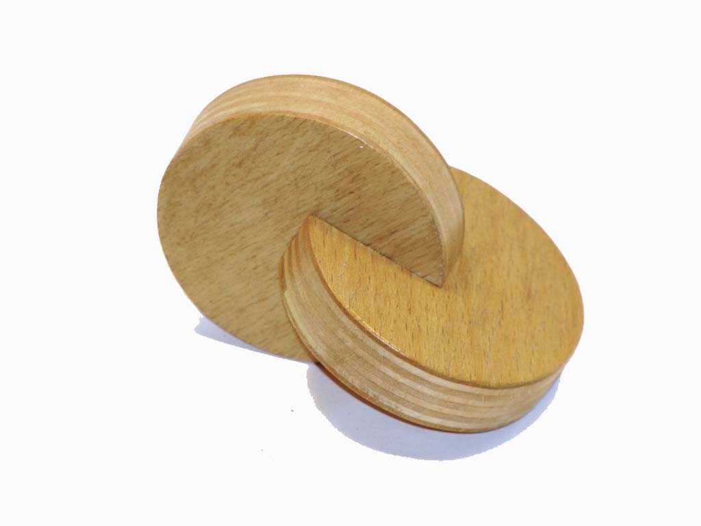 Setul este format din doua discuri de lemn intrepatrunse lipite intre ele, fiecare avand diametrul de 5 cm.