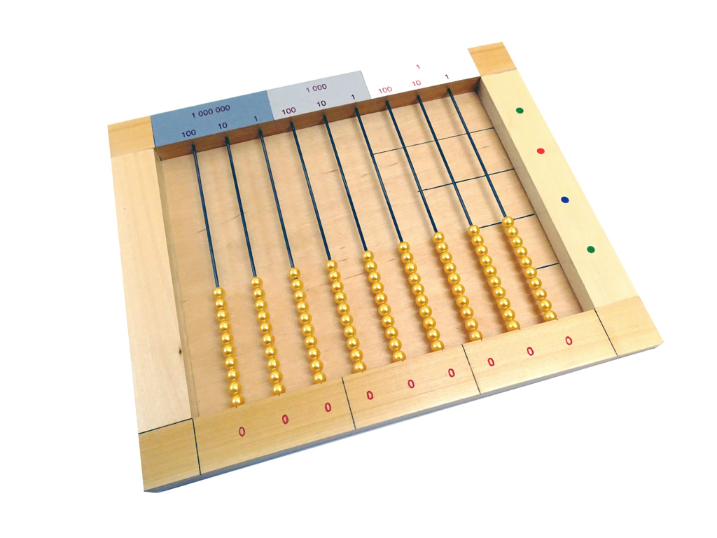 Materialul este realizat dintr-o rama de lemn cu 9 tije metalice pe care sunt insirate margele aurii.