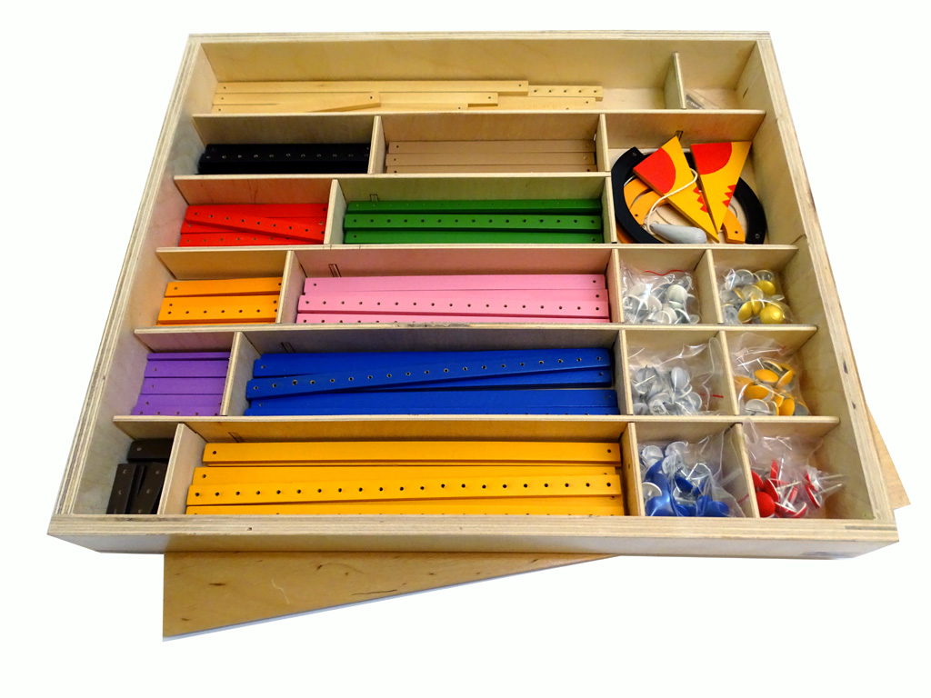 Acest material este utilizat pentru măsurarea unghiurilor, construcția și analiza formelor geometrice plane. Este alcătuit dintr-o serie de lamele din lemn colorate, curbe si un triunghi de măsurare, snur cu plumb și elemente de fixare, toate stocate într-o cutie de lemn compartimentată cu capac.