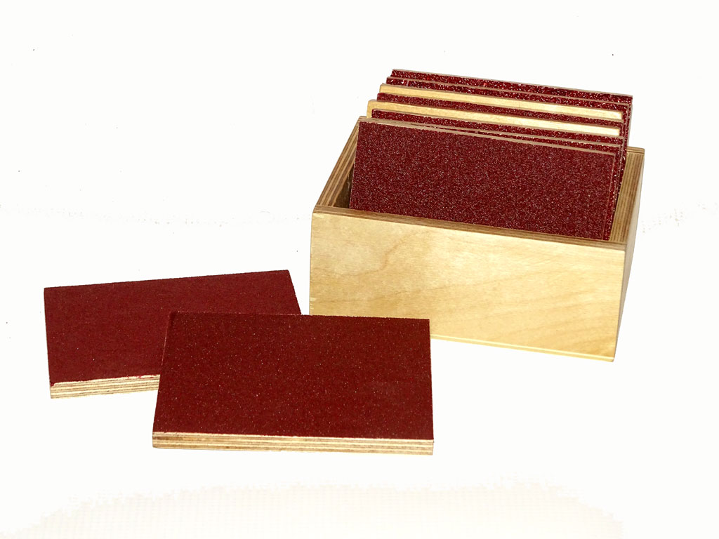 Aceste placi acoperite cu benzi abrazive de granulatii diferite ajuta la dezvoltarea simtului tactil al copilului, rafineaza controlul si coordonarea miscarii degetelor si pregatesc copilul pentru scris.