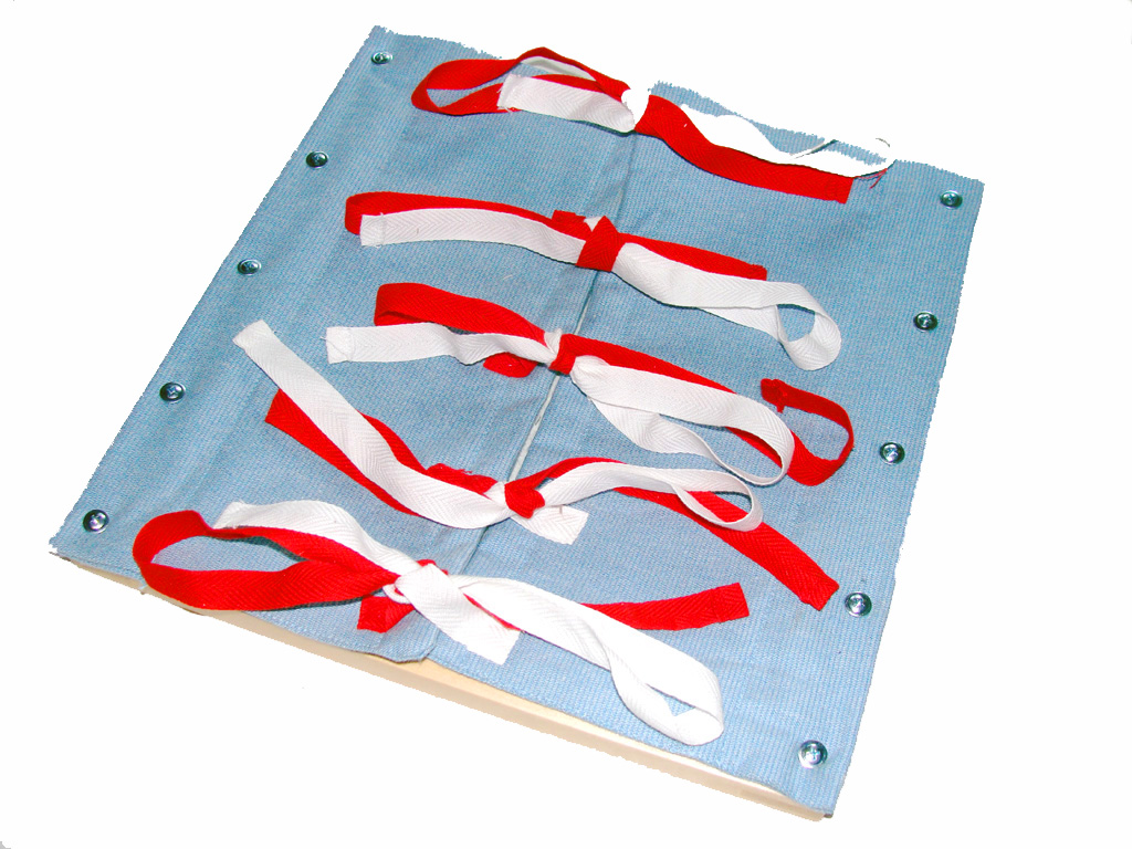 Working with this material refines motor skills and coordination, teaches the child to dress and undress himself and to control his personal hygiene.