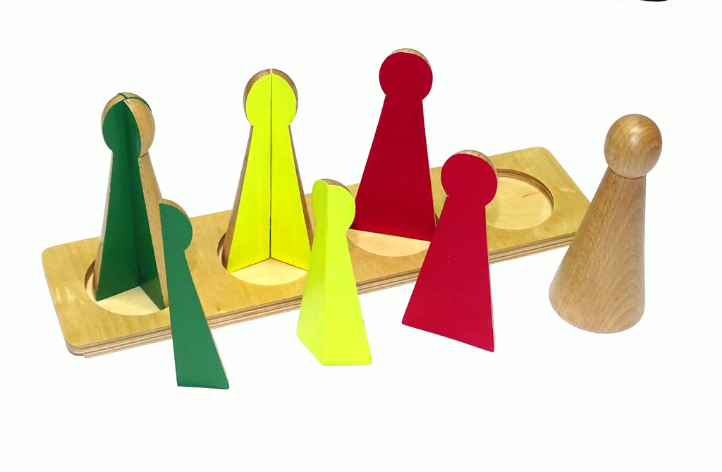 Spre deosebire de cercurile de fracții plate (2D), acești pioni oferă copilului o experiență tactilă a volumului care se fragmentează.