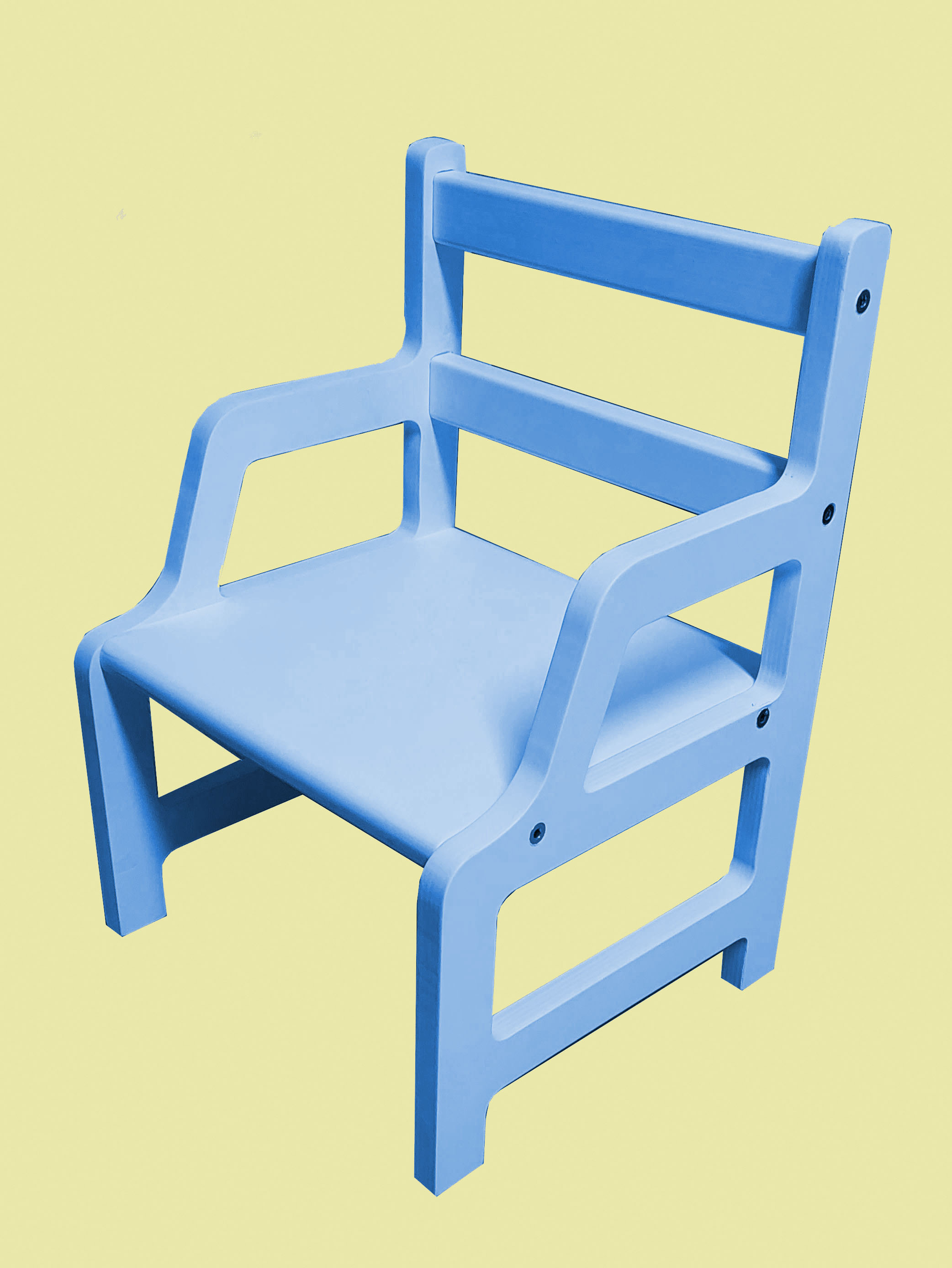 Chair made of wood plywood with a seat height of 17 cm. Painted in light blue color.