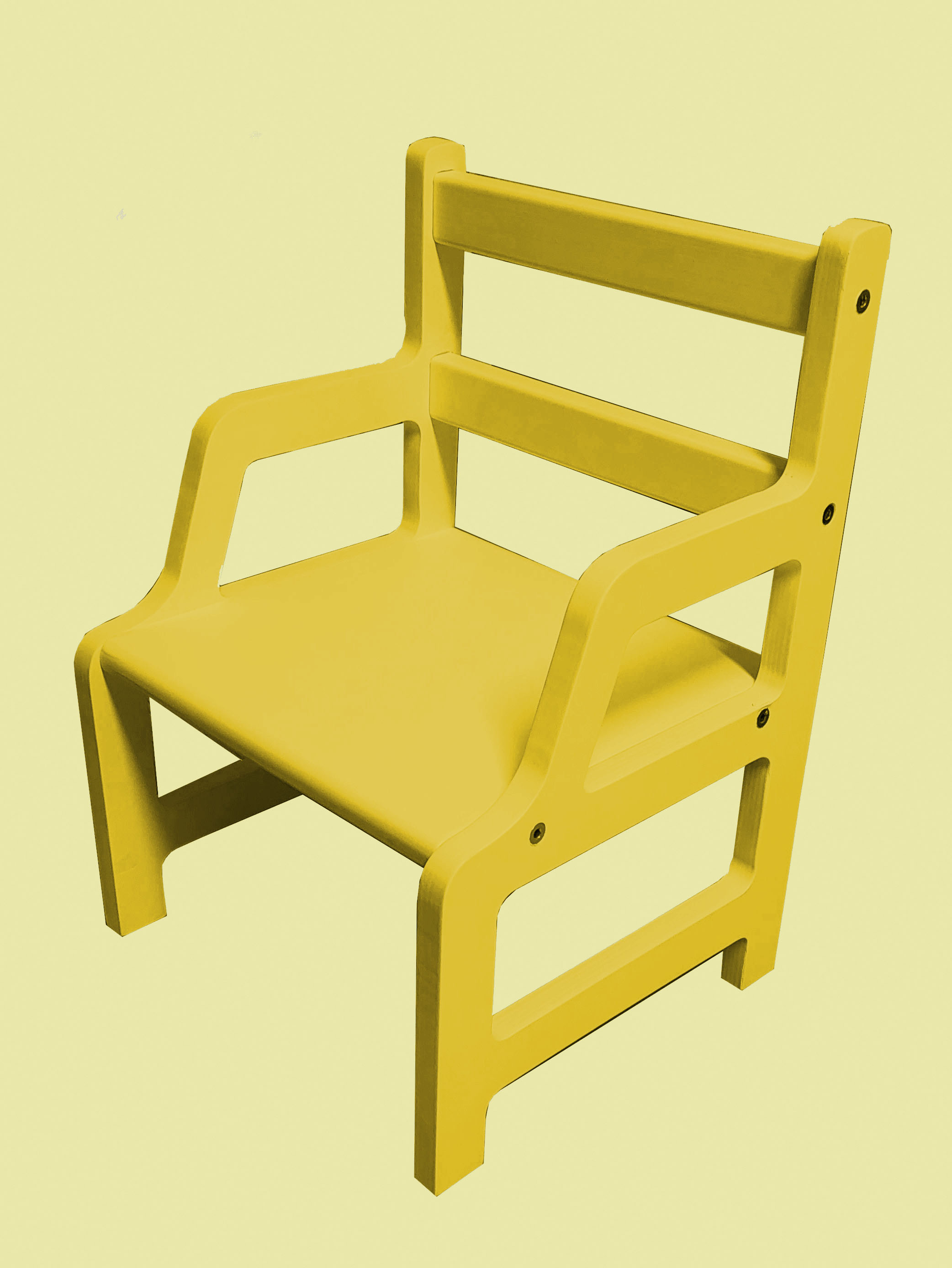 Chair made of wood plywood with a seat height of 17 cm. Painted in yellow color.