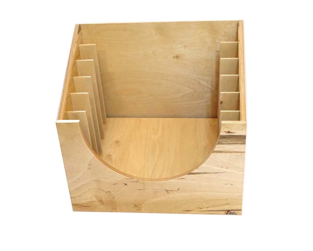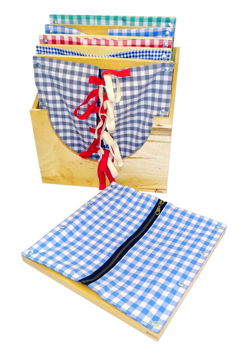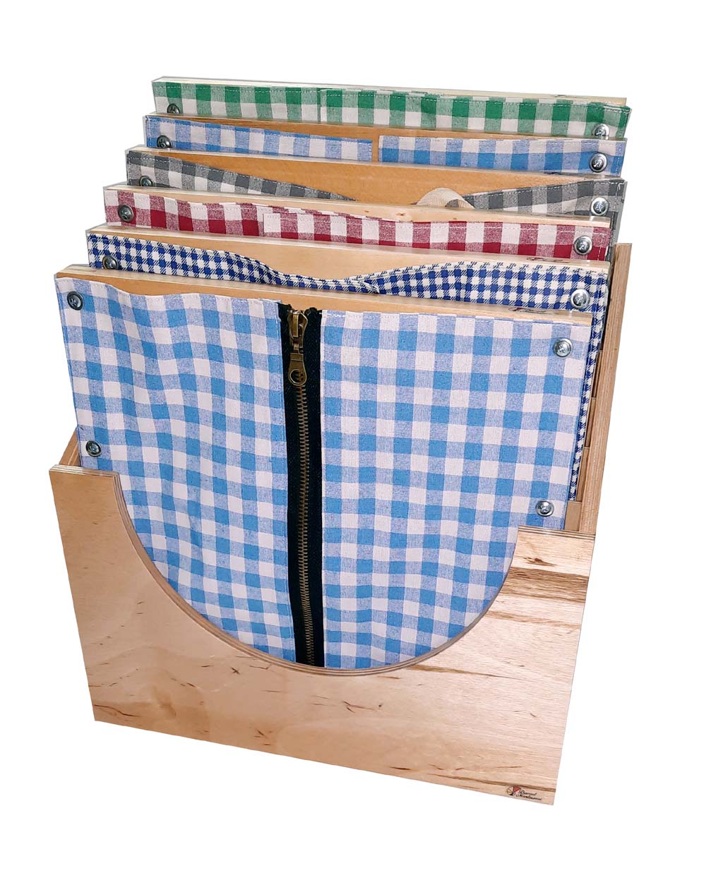 Stand made of birch plywood in which 6 frames with types of closures can be placed. The stand is finished by varnishing.